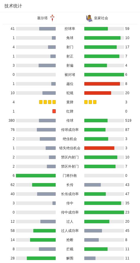 北京时间10月19日,西班牙足球甲级联赛第9轮展开较量,塞尔塔坐镇主场迎战皇家社会。比赛中,明格萨送出助攻,巴勃罗-杜兰破门得分,为塞尔塔取得领先。上半场补时阶段,斯塔费尔特累计两张黄牌被罚离场。第89分钟,贡萨洛-格德斯助攻索莱尔完成破门,帮助皇家社会扳平比分。最终全场比赛结束,双方以1比1握手言和。