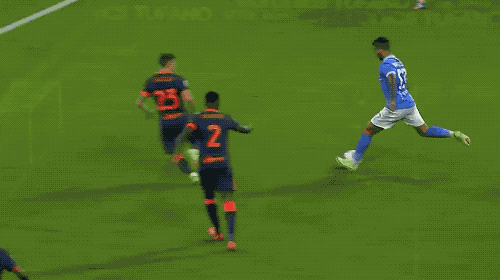 下半场开始后,国米继续大举进攻,那不勒斯抓住了反击的机会,斯皮纳佐拉的长传打穿国米防线,麦克托米奈不按常规出牌,不停球直接凌空抽射,攻破索默的十指关。